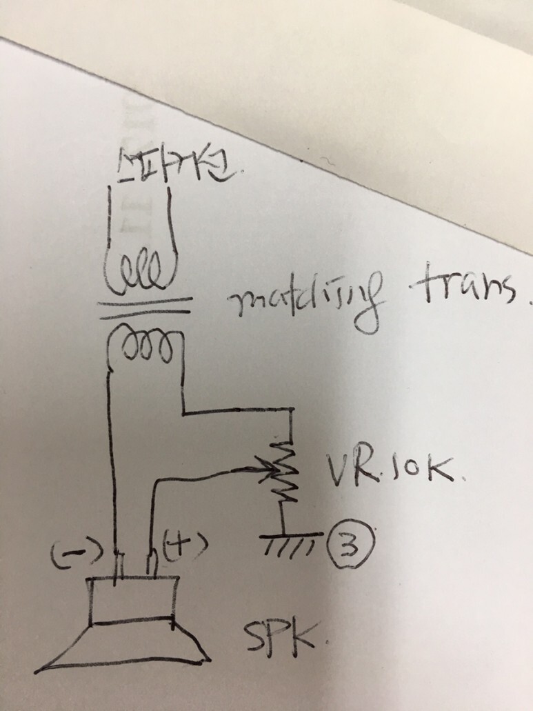 임피던스 매칭트랜스를 우회해서 스피커에 연결되어 있었다. 결선을 다시하면 소리는 잘 들리겠지만 너무 시끄러울것같아. 볼륨조절가능토록.