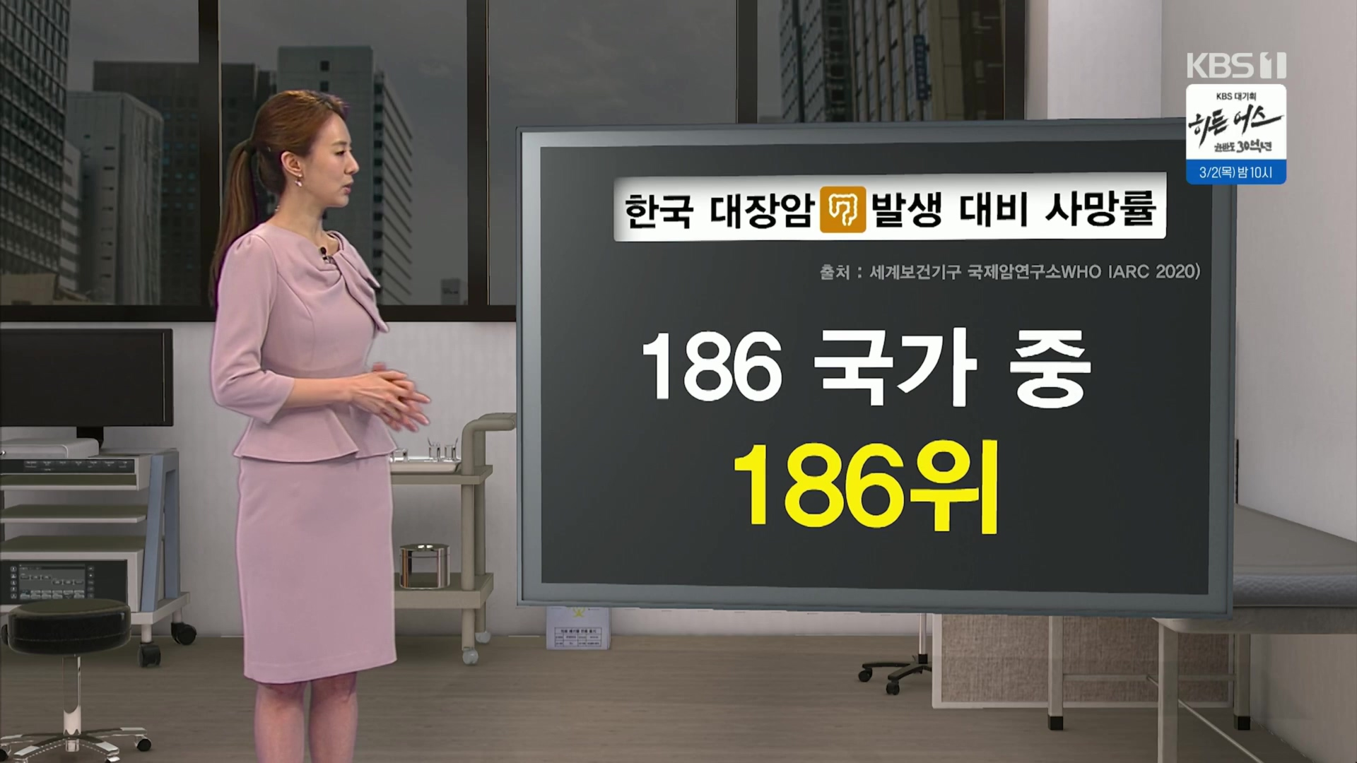 3월 1일 밤 10시 KBS1TV '생로병사의 비밀‘에서는 ’대장암 발병률 세계 1위, 위험 인자를 줄여라‘ 편을 방송한다.