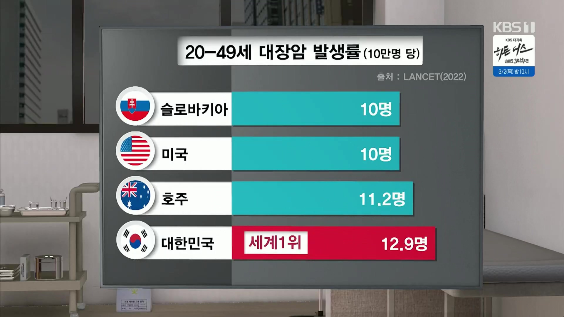 2023년 3월 1일 수요일 밤 10시 KBS1TV<생/로/병/사/의 비밀>에서는 대장암을 유발하는 생활 요인을 확인해보고, 대장암을 예방할 수 있는 효과적인 생활 습관에 대해 알아본다.