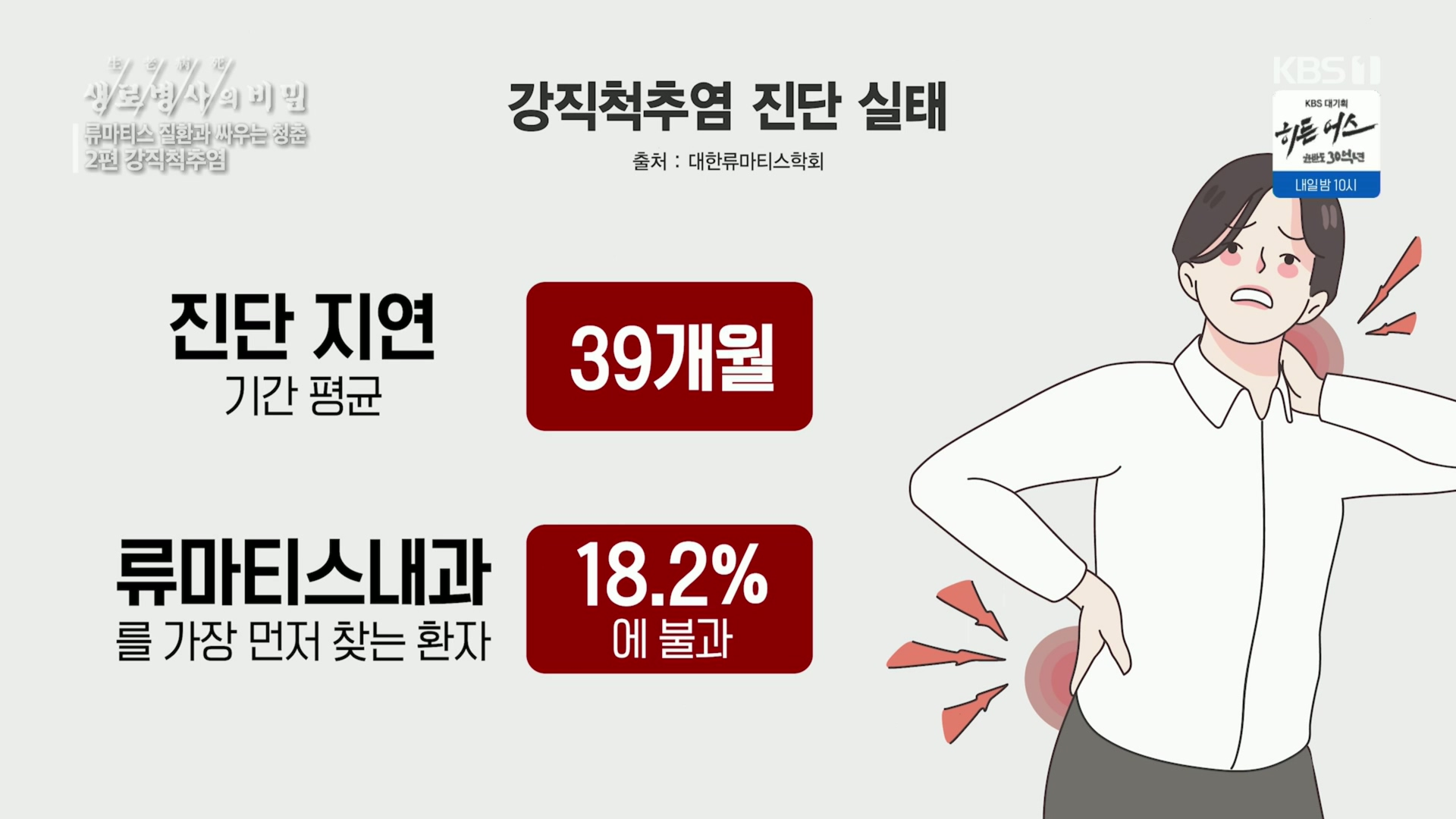 생로병사의 비밀.E451.젊은 허리를 노린다, 강직성 척추염 451회 젊은 허리를 노린다, 강직성 척추염.20130309 - 명의.E721.210625.설마, 내가 류마티스? 명의소개(경희대 류마티스내과 이연아)