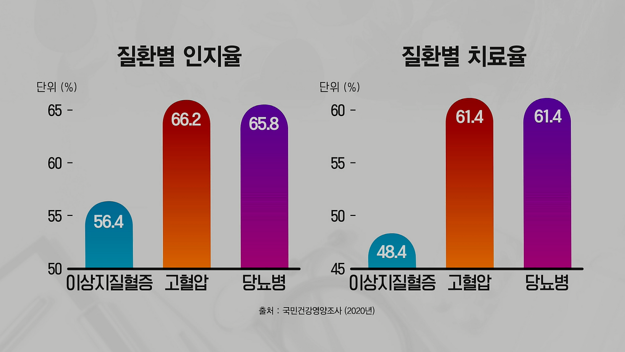 이상지질혈증 진단을 받고서도 심각성을 잘 모르는 사람들이 많다. 이상지질혈증은 당뇨병, 고혈압과 같이 심뇌혈관질환의 주요 선행 질환으로 꼽히는 질환이다. 하지만, 조사 결과 두 질환에 비해 인지율이 낮고 치료율도 10%가량 낮게 나타났다.