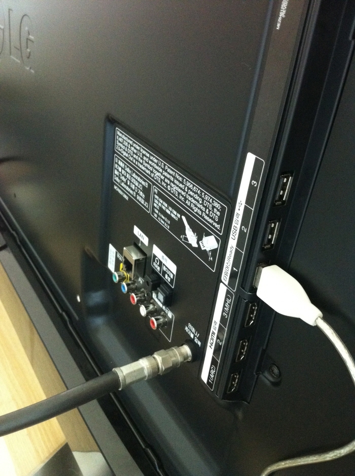 뒷판을 보자.. LG는 오른쪽....삼성은 왼쪽... USB3개, HDMI3개 컴포넌트 입력1, 컴포지트 1개, 디지털오디오 IN/Out 각 하나, 유선 LAN 포트