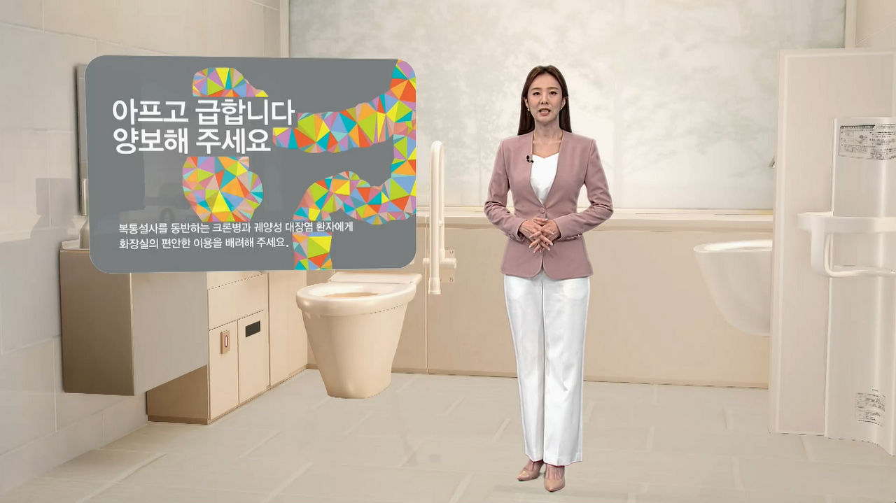 크론병 환자들은 심한 복통과 설사로 화장실을 자주 찾는다. 또한, 합병증으로 인해 장 절제술을 받은 후 장루를 달고 생활한다면 야외 활동을 할 때 수시로 쌓이는 장루 주머니를 공중화장실에서 비워야 한다. 하지만 아쉽게도 국내에는 일부 병원을 제외하곤 장루 환자를 위한 화장실은 없다. 미국, 일본에서 장루 주머니를 편하게 교체하고 비우는 전용 화장실을 설치하자는 캠페인이 활성화되고 있다. 우리나라도 장루 전용 화장실 확대 설치에 관심을 기울이며 정책적으로 장루 화장실의 설치를 촉구할 필요가 있다. 크론병과 궤양성 대장염 환우들을 위한 사소하지만 세심한 배려로 그들과 함께 일상을 살아가도록 노력해 보자. 2023년 9월 20일 수요일 밤 10시 KBS1TV <생/로/병/사/의 비밀>에서 크론병의 관리와 치료법을 확인할 수 있다.
