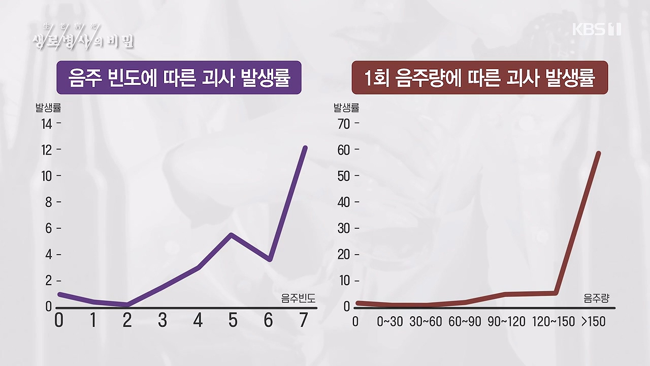 음주빈도가 많거나, 1회 음주량이 많은 경우 괴사 발생률이 높다