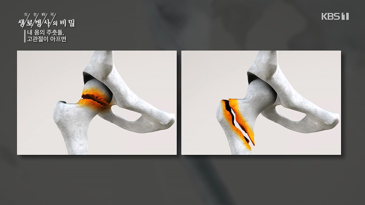 KBS 생로병사의 비밀888회 [내 몸의 주춧돌, 고관절이 아프면] 홍보문방송 일시 : 2023. 11. 15. 수요일 밤 10시 KBS 1TV연출 : 김동국 / 작가 : 허은영 앉고 서고 걷고 달리는 등 우리가 움직이는 순간마