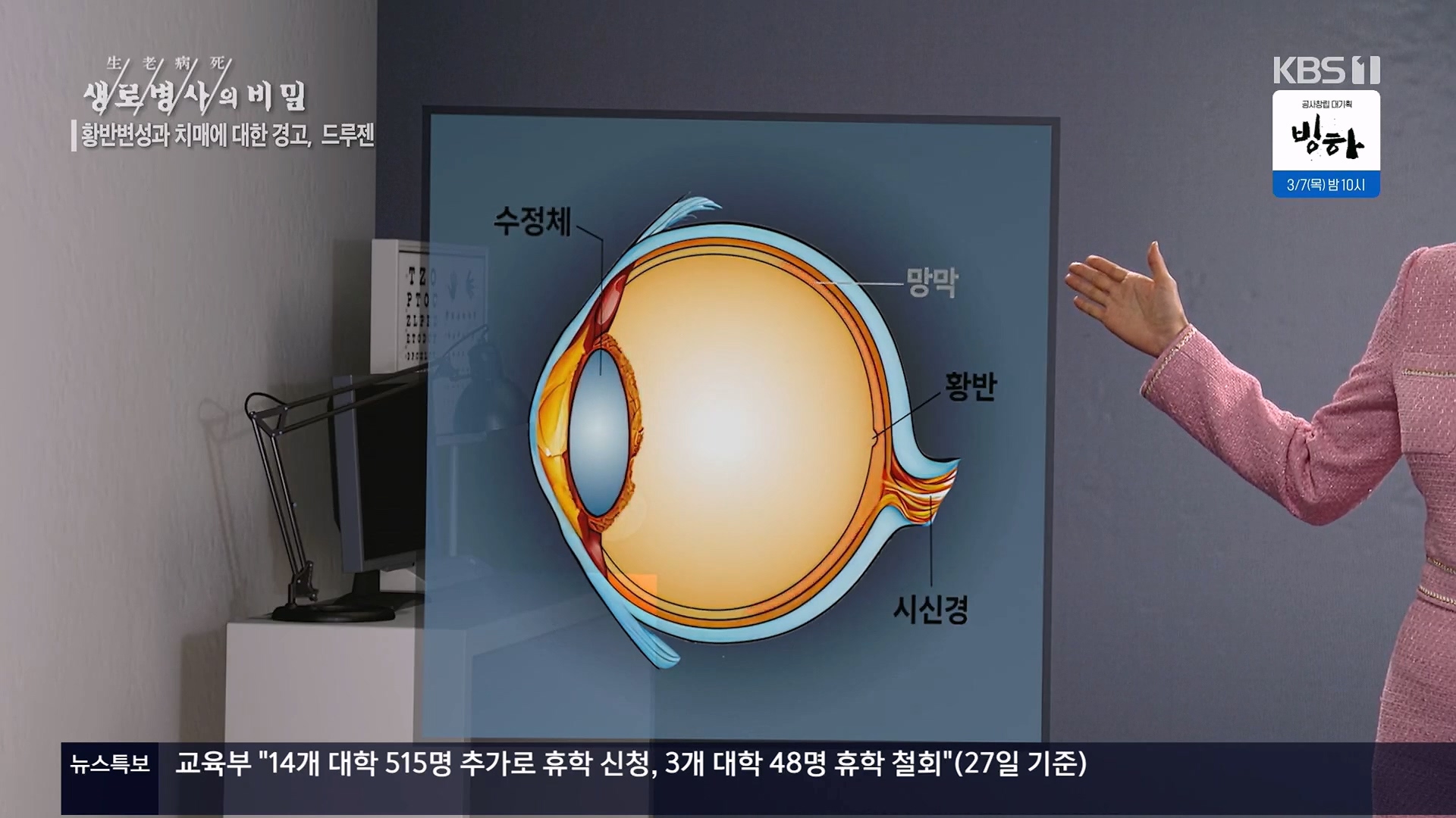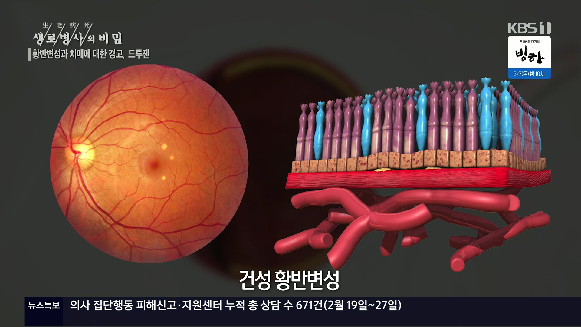 2024년 2월 28일 수요일 밤 10시 KBS 1TV <생/로/병/사/의 비밀>에서 황반변성으로부터 내 눈을 지킬 수 있는 방법을 만나본다.