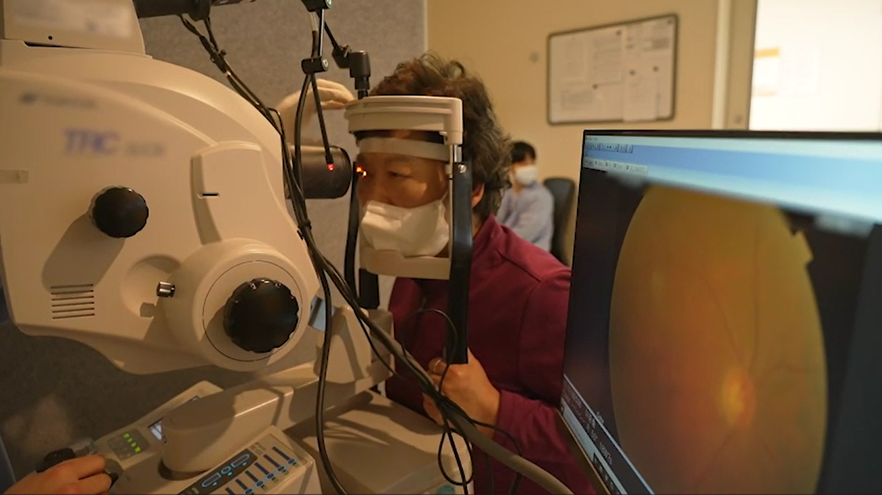 69세 유지영씨는 어느 날 갑자기 한눈이 뿌옇게 느껴지더니 사물의 중심이 보이지 않았다. 황반변성으로 위축된 망막의 시력은 돌이킬 수 없었다. 하지만 이어서 발생한 반대 눈의 황반변성은 일찍 발견해 좋은 시력을 유지하고 있다.