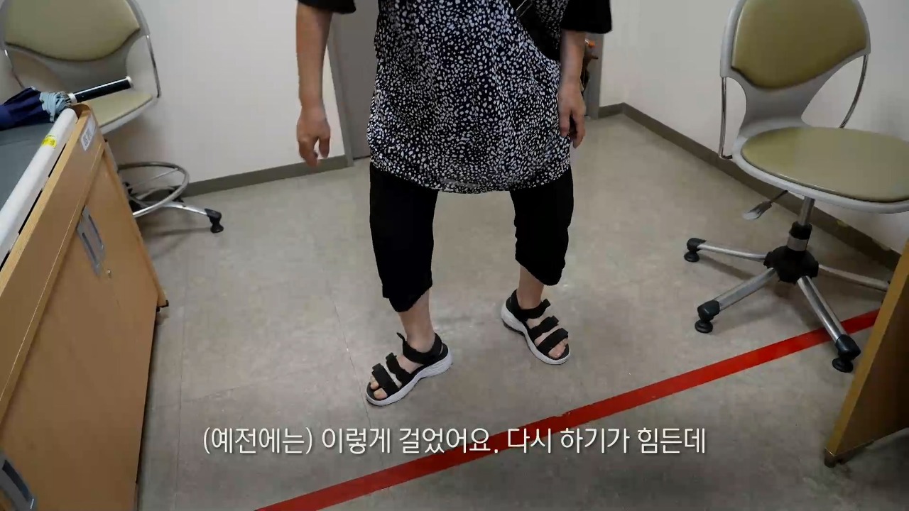 김영자 씨는 거동이 불편해 외출은 상상도 못 하는 상황. 집 안에서도 앉은 채로 엉덩이를 끌며 이동한다. 제 각도를 잃어버린 허리로 인해 보행까지 불가능한 것이다. 왜 허리 때문에 일어서는 것도 걷는 것도 힘들어진 걸까.