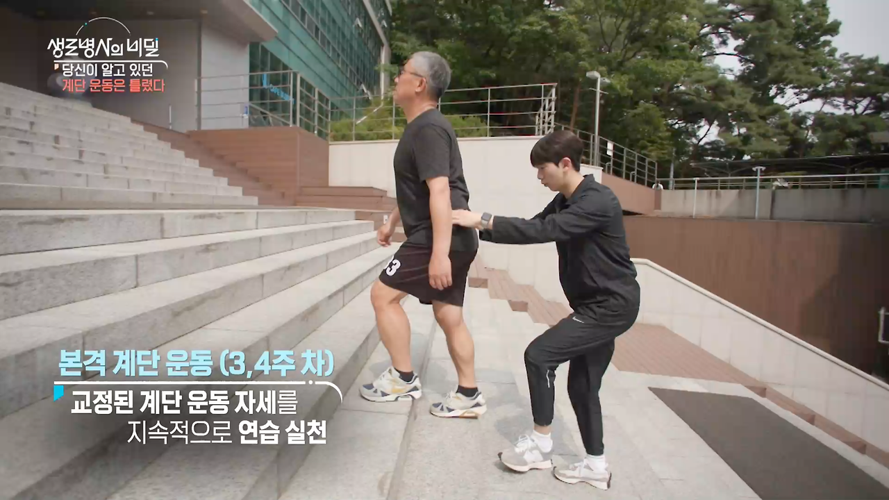 본격 계단운동 (3, 4주차) : 교정된 계단 운동자세를 지속적으로 연습 실천 - 올바른 계단운동자세