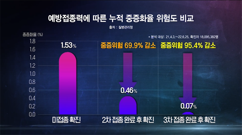 2021년 7월, 백신 미접종 상태로 코로나19에 감염되었던 50대 여성 조영하 씨가 가천대길병원으로 이송됐다. 당시 조영하 씨의 상태는 양쪽 폐 중 숨을 쉴 수 있는 폐가 거의 없어진 상태. 에크모(ECMO) 치료와 기관 절개술을 받고 약 2달 만에 퇴원할 수 있었던 조영하 씨. 엄중식 교수는 “(조영하 씨가) 아마 백신을 접종했다면 이렇게까지 안 됐을 것”이라고 말하며 다시 한번 백신 접종의 중요성을 강조했다. 실제로 질병관리청 연구에 따르면 백신 미접종자는 접종자와 비교해 중증화율이 높다는 결과가 나왔다.