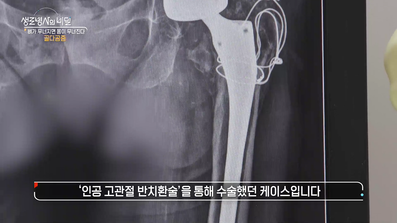 - 생로병사의 비밀.E852.삶을 무너뜨리는 골다공증 당신의 골밀도를 아십니까?.20230118 ■ 출연진 출연의료진 : 서울대학교병원 정형외과 김홍석 교수 , 강동경희대학교병원 정형외과 김용찬 교수 , 인제대학교 서울백병원 가정의학과 박현아 교수 , 서울성모병원 내분비내과 하정훈 교수 , 경희의료원 류마티스내과 이연아 교수 , 인천성모병원 내분비내과 조관훈 교수 , 재활의학과 김재민 교수