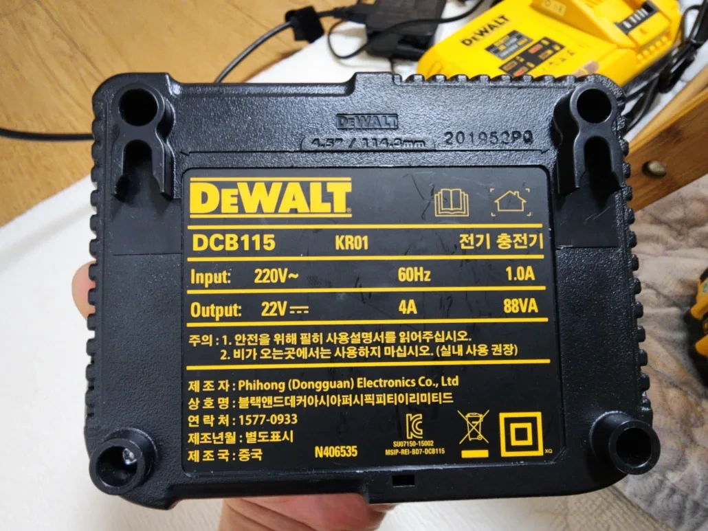 우선 디월트 무선 충전 공구들중 20V 제품군을 구매하게 되면 번들로 많이 구성되어있는 디월트 충전기 DCB115입니다.