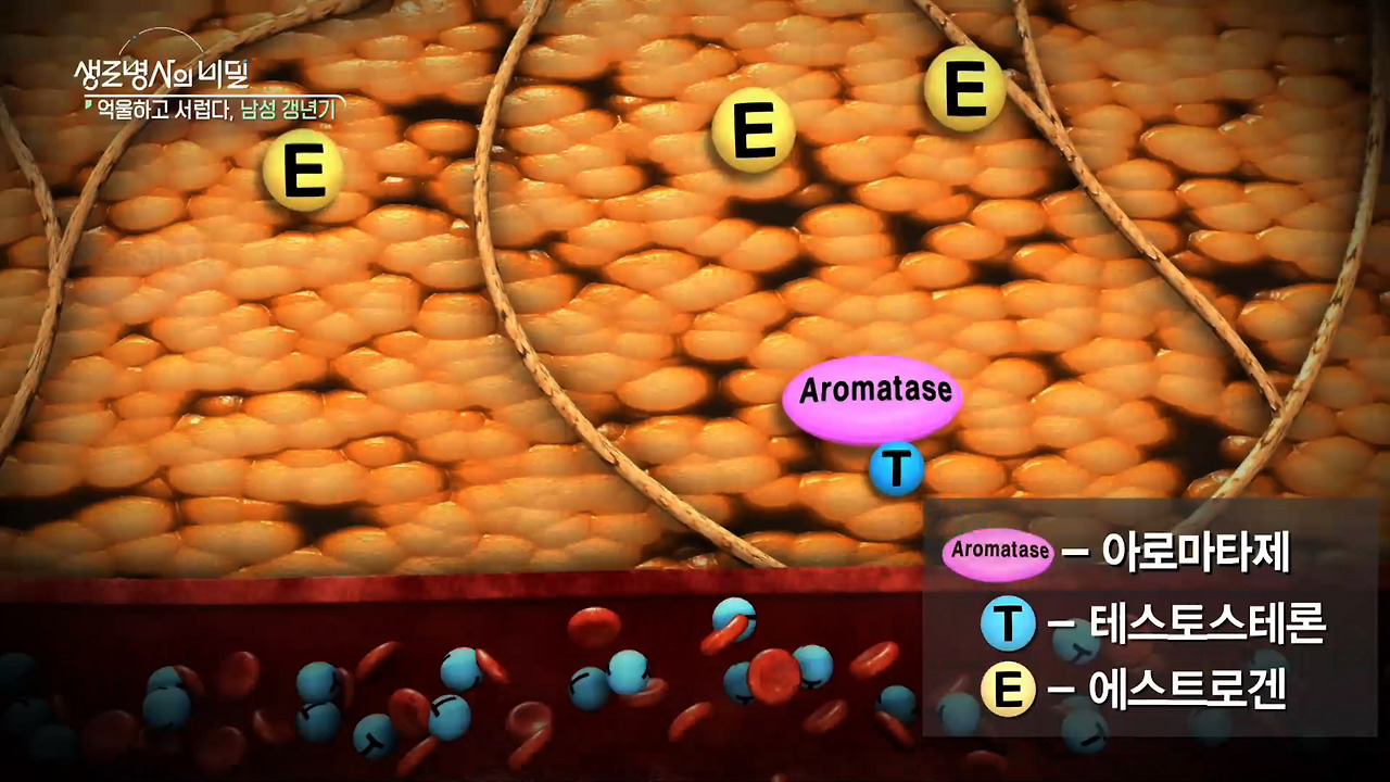 - 지방내부에서 남성호르몬을 여성호르몬으로 변환하게 된다. => 호르몬 불균형 => 남성호르몬 수치가 낮아진다.