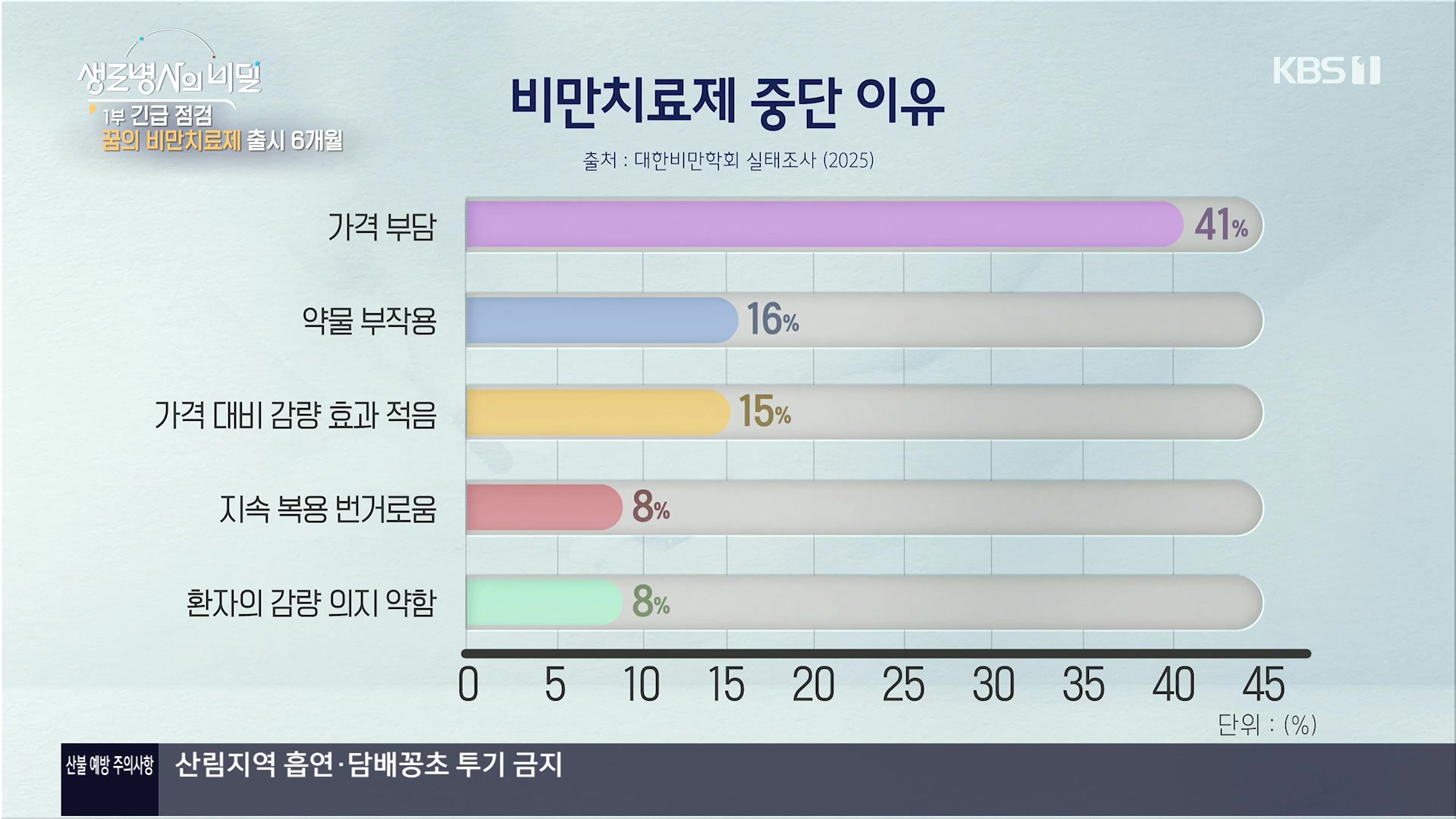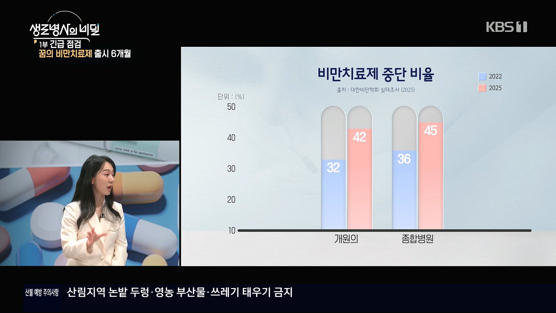 비만 탈출 2부작 1부: 긴급 점검, 꿈의 비만치료제 출시 6개월 * 방송일시 : 2025. 4. 30. (수) 밤 10시 KBS 1TV * 연출: 안주식 * 작가: 김해연, 신소원, 양해빈 미국 토크쇼 진행자 오프라 윈프리와 테