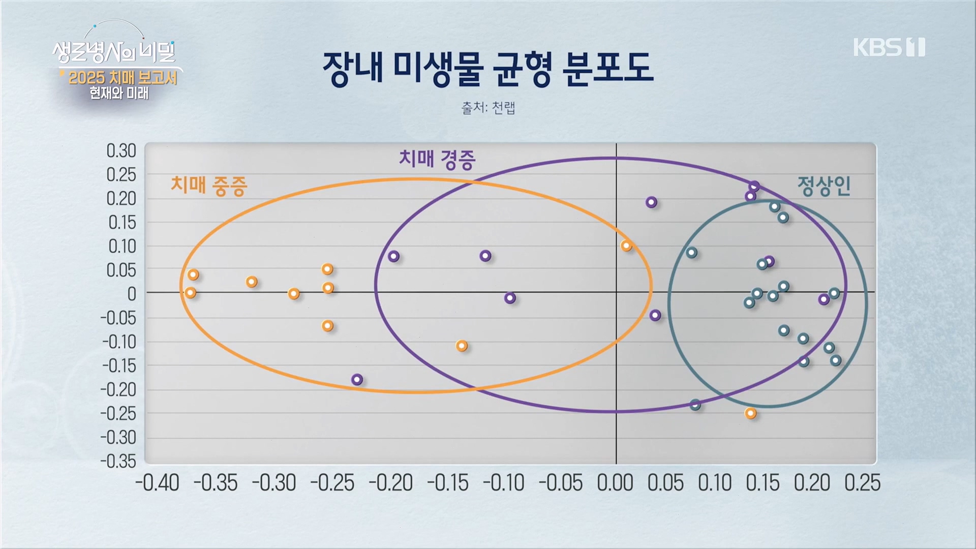 치매 중증, 경증, 정상에 따라, 장내 미생물 균형이 깨져 있는 정도가 다름