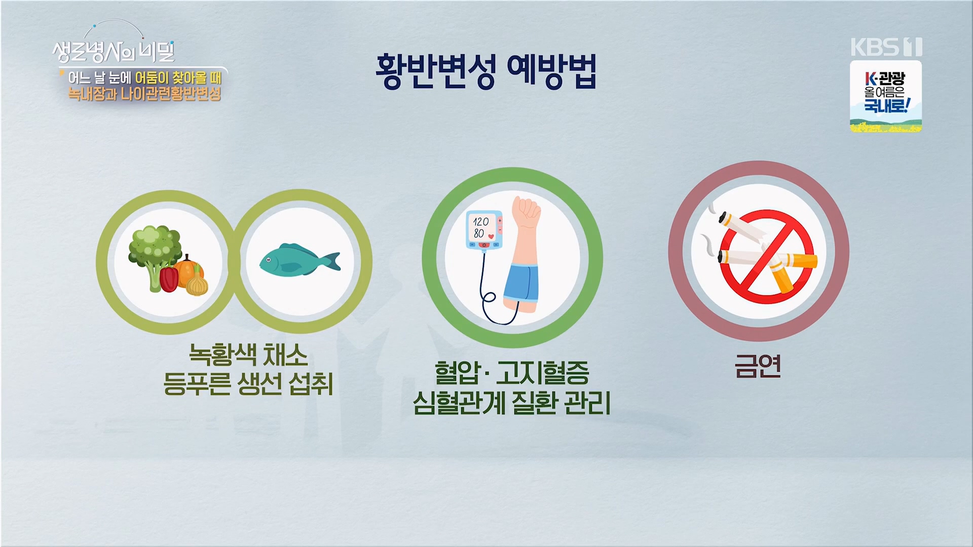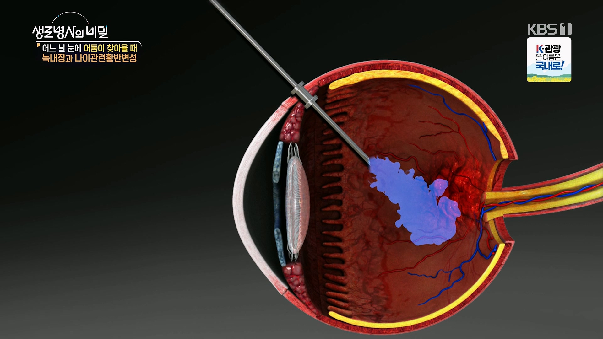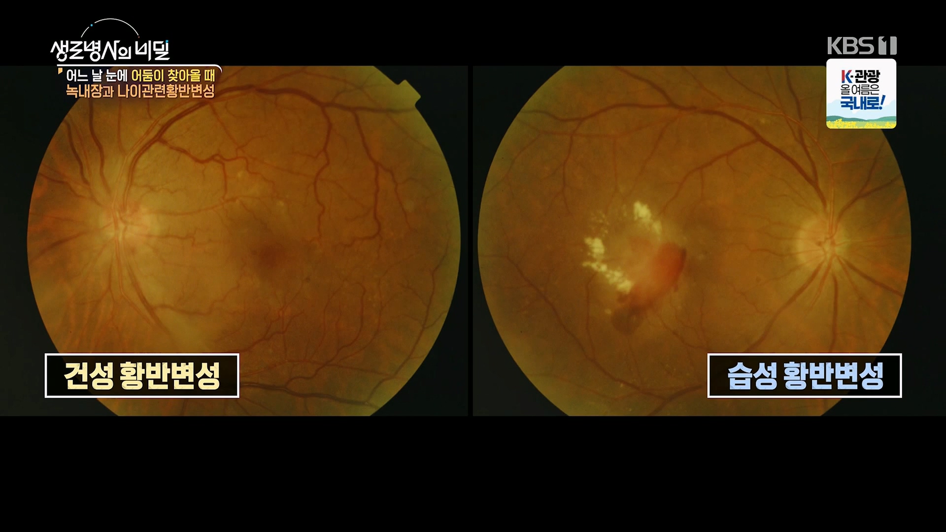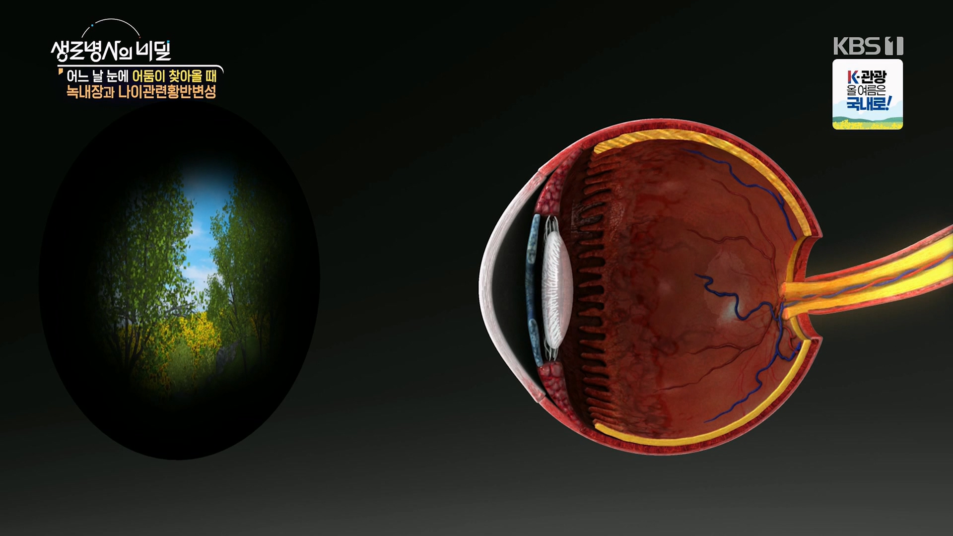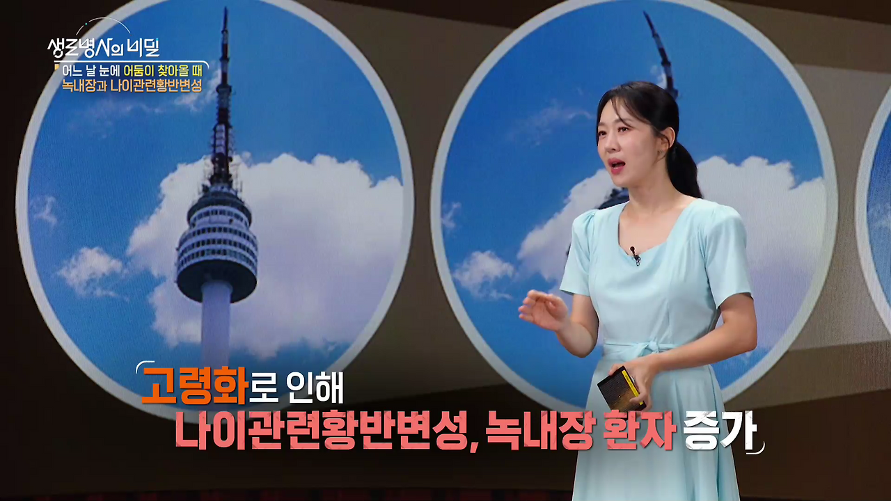 안질환* 방송일시 : 2025. 7. 9. (수) 밤 10시 KBS 1TV* 연출: 장민구* 작가: 김지영, 양해빈녹내장·나이관련황반변성은 실명 위험까지 동반하는 대표적인 안질환이다.문제는 두 질환이 자각 증상 없이