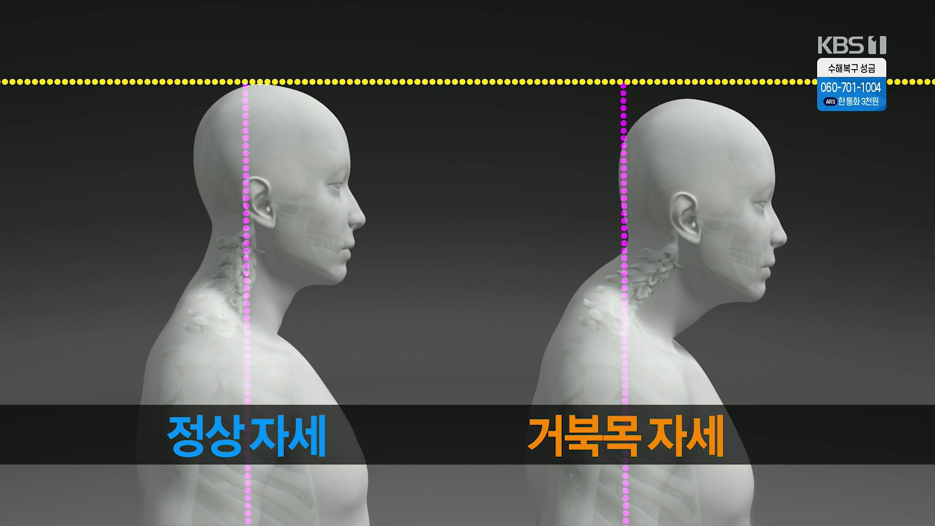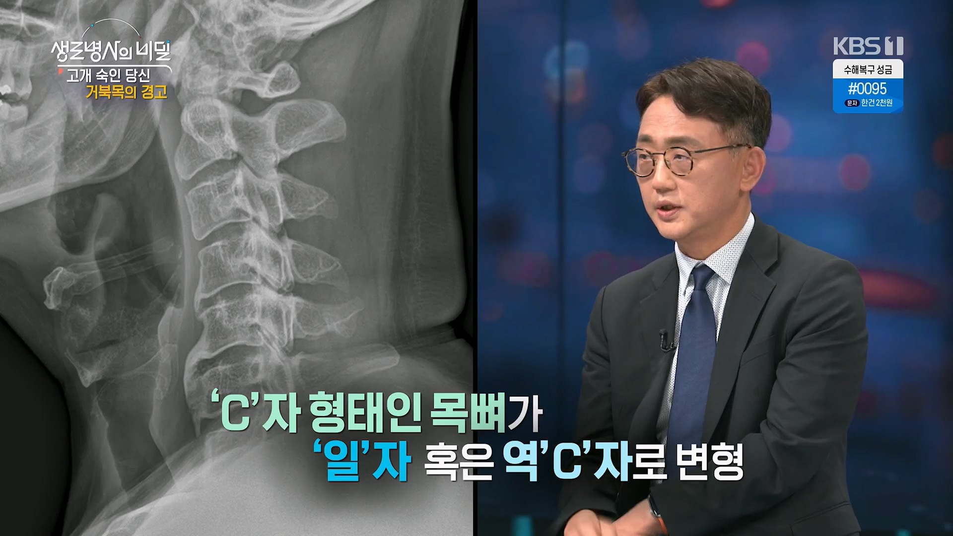 고개 숙인 당신, 거북목의 경고방송 일시: 2025. 8. 6 수요일 밤 10시 KBS 1TV연출: 이명선 / 작가: 강유정, 강헌스마트폰 보유율 약 98%의 시대.스마트폰을 비롯한 다양한 디지털 기기가 일상을 지배하
