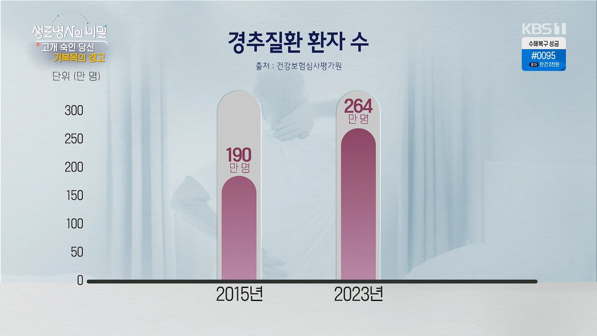 - 지난10년간 경추질환 환자수 (출처:건강보험심사평가원) 2015년 190만명 -> 2023년 264만명