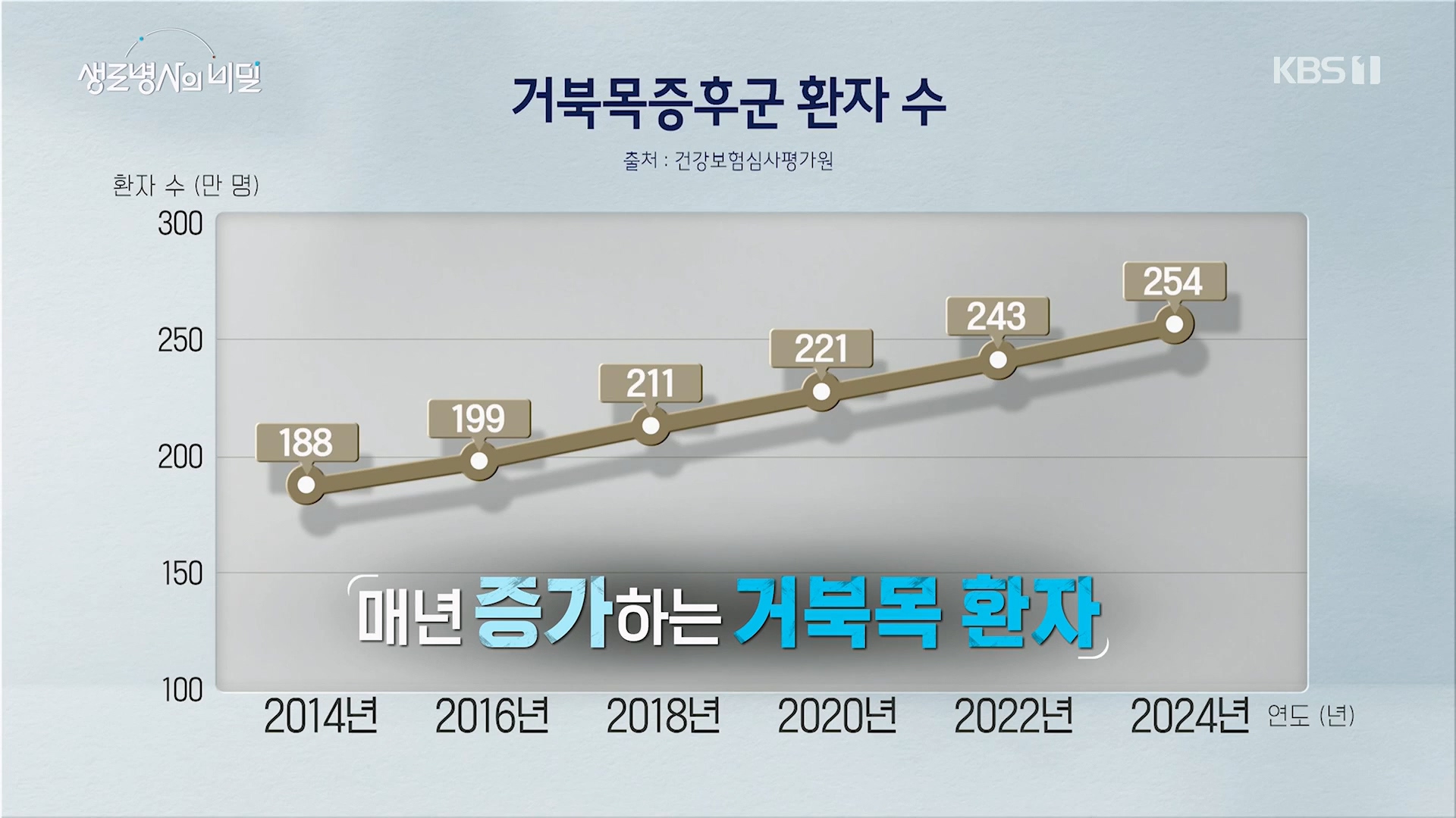 - 거북목증후군 환자수 매년증가세 2014년 188만명-> 2024년 254만명