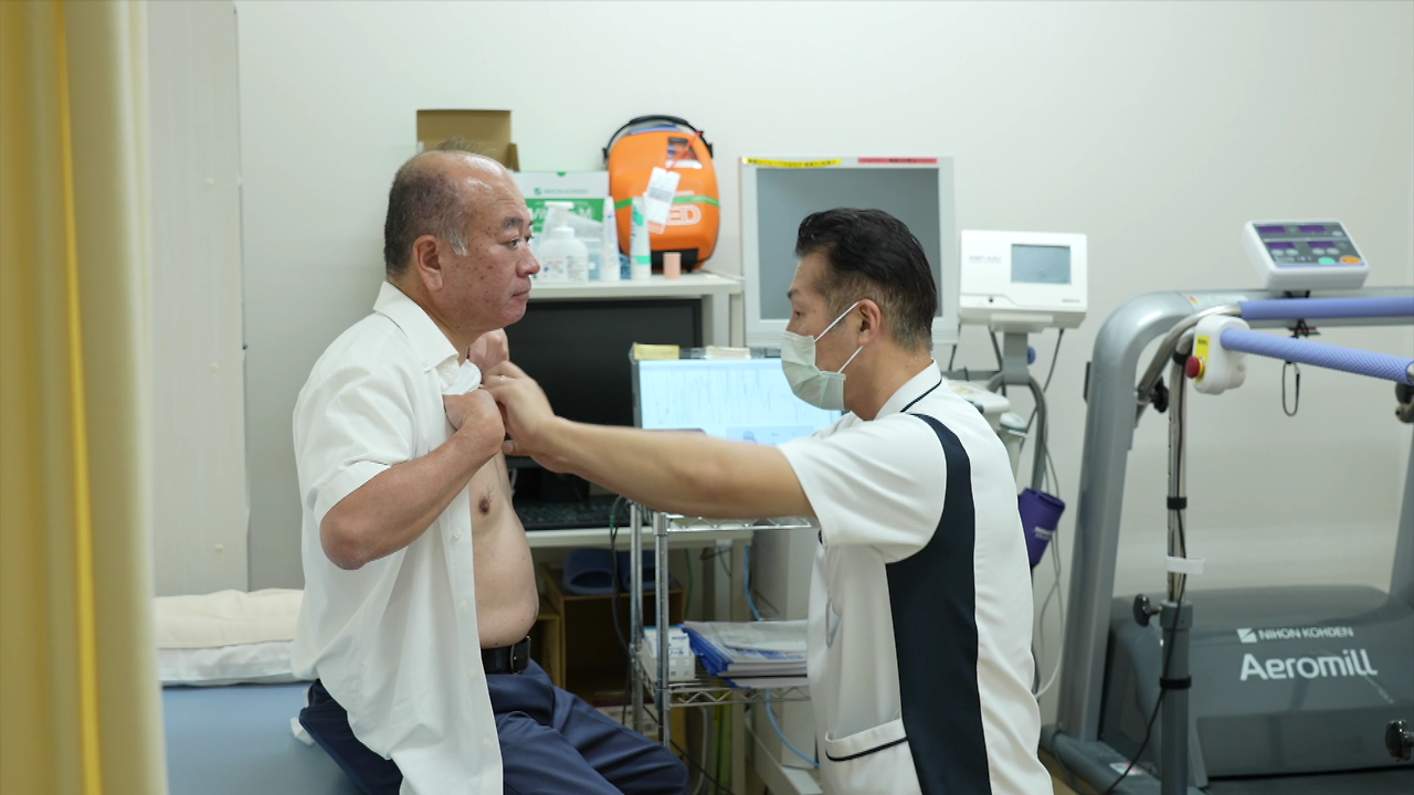 9년 전 뇌졸중을 겪은 야마모토 요시노부 씨는 현재 뇌졸중의 근본 원인을 찾아 재발을 막기 위한 관리에 집중하고 있다. 그는 간헐적으로 나타나는 심방세동을 장기 모니터링으로 추적하며, 심전도 패치 같은 웨어러블 기기를 통해 심장 상태를 꾸준히 기록하고 있다.